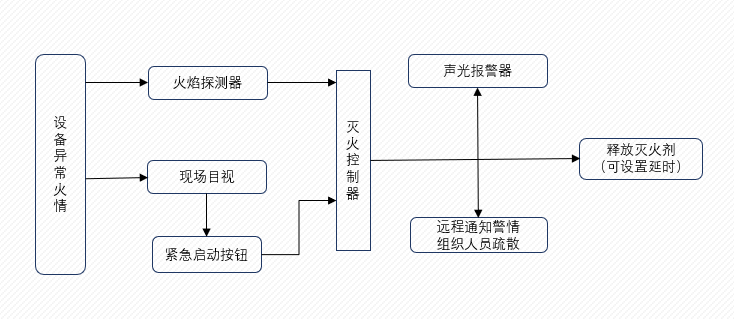 機床滅火解決方案將火焰探測器安裝在火源最可能發生處的上方進行探測。當出現異常時提前預警避免火災發生,火災突發時快速有效的撲滅火患,滅火介質通過釋放管直接噴射到被保護區域。